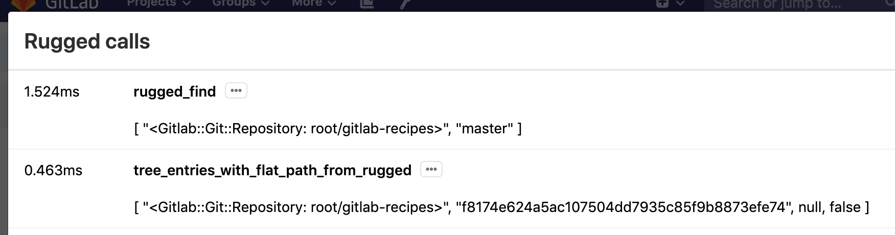 Gitaly calls. Click to display a modal window with more