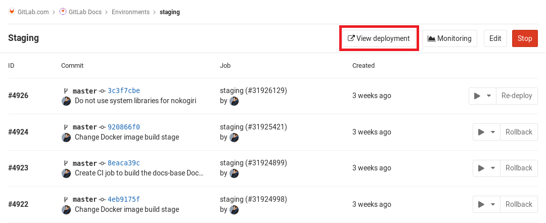within GitLab. Each time a job that has an environment specified