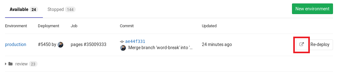In our minimal example, we named the environments review/$CI_COMMIT_REF_NAME