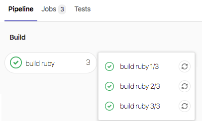 You can recognize when a pipeline has grouped jobs if you don’t see the retry or cancel button inside them. Hovering over them shows the number of grouped jobs. Click to expand them.