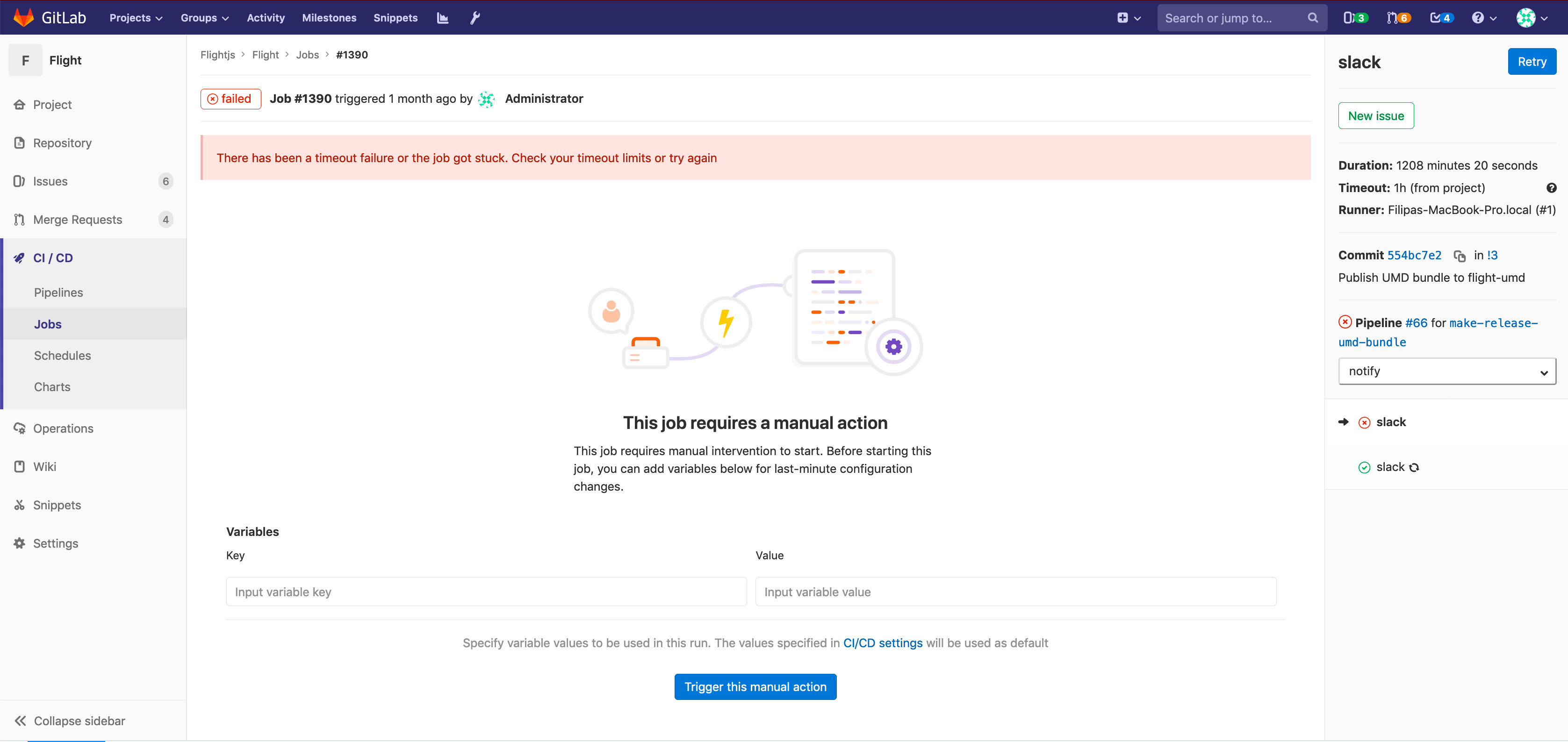 For example, your pipeline might start automatically, but it requires manual action to deploy to production. In the example below, the production stage has a job with a manual action.