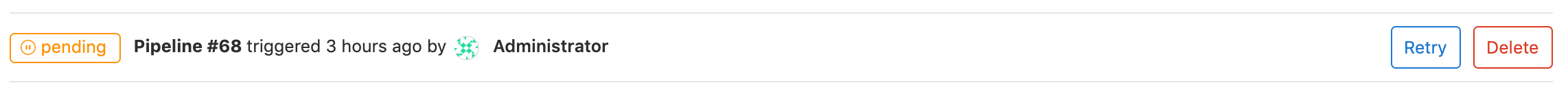 Click a pipeline to open the Pipeline Details page and show the jobs that were run for that pipeline. From here you can cancel a running pipeline, retry jobs on a failed pipeline, or delete a pipeline.