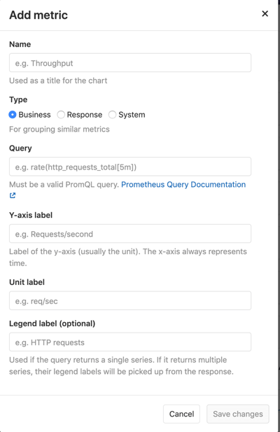 - Type: Type of metric. Metrics of the same type will be shown together.