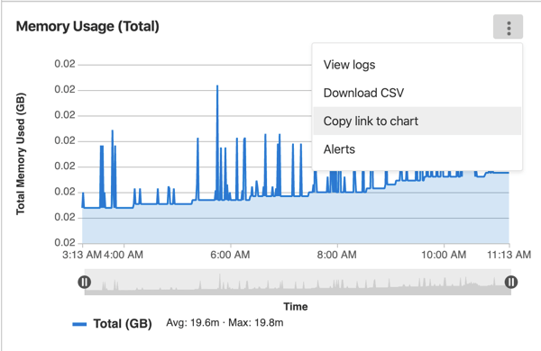 You can also embed a single chart. To get a link to a chart, click the More actions menu in the upper right corner of the chart, and select Copy link to chart, as shown in this example: