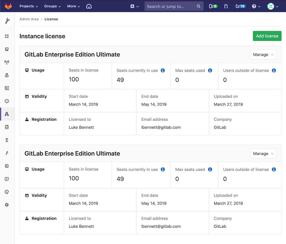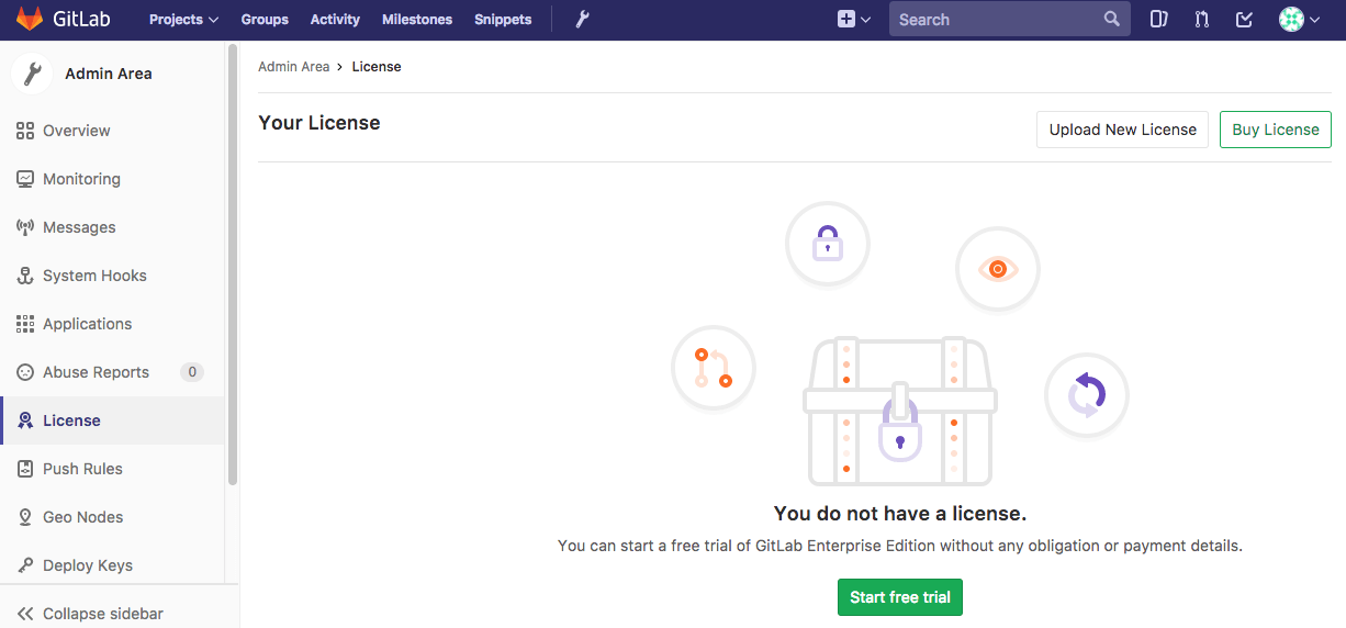 To activate all GitLab Enterprise Edition (EE) functionality, you need to upload a license. Once you’ve received your license from GitLab Inc., you can upload it by signing into your GitLab instance as an admin or add it at installation time.
