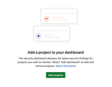 After you add projects, the security dashboard and vulnerability report display the vulnerabilities found in those projects’ default branches.