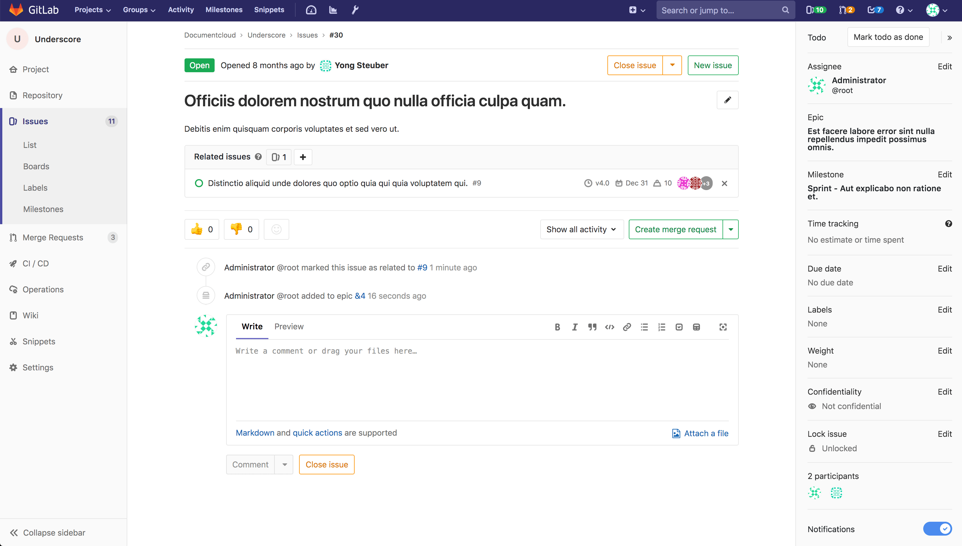 Creating an issue from an epic enables you to maintain focus on the broader context of the epic while dividing work into smaller parts.