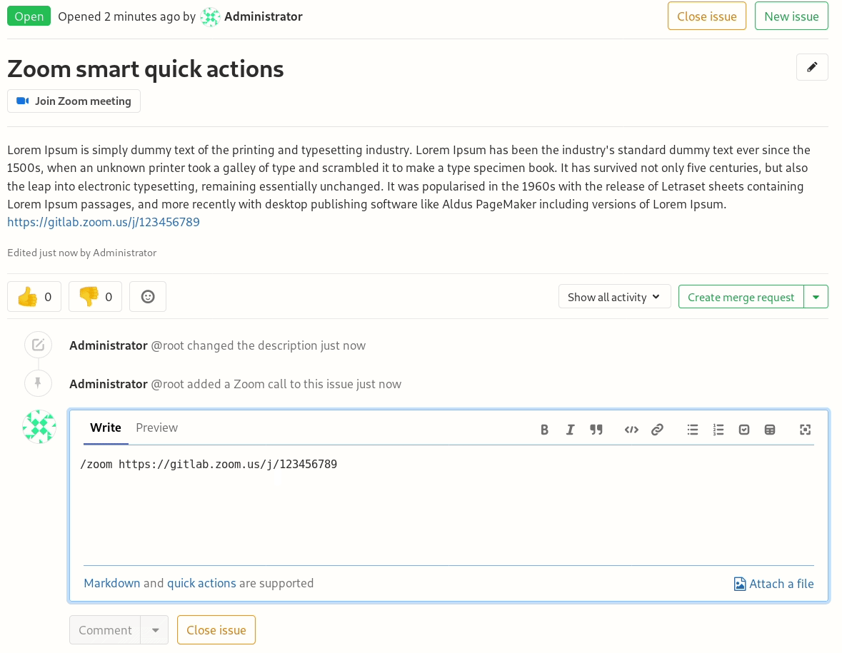 In order to communicate synchronously for incidents management, GitLab allows to associate a Zoom meeting with an issue. Once you start a Zoom call for a fire-fight, you need a way to associate the conference call with an issue, so that your team members can join swiftly without requesting a link.