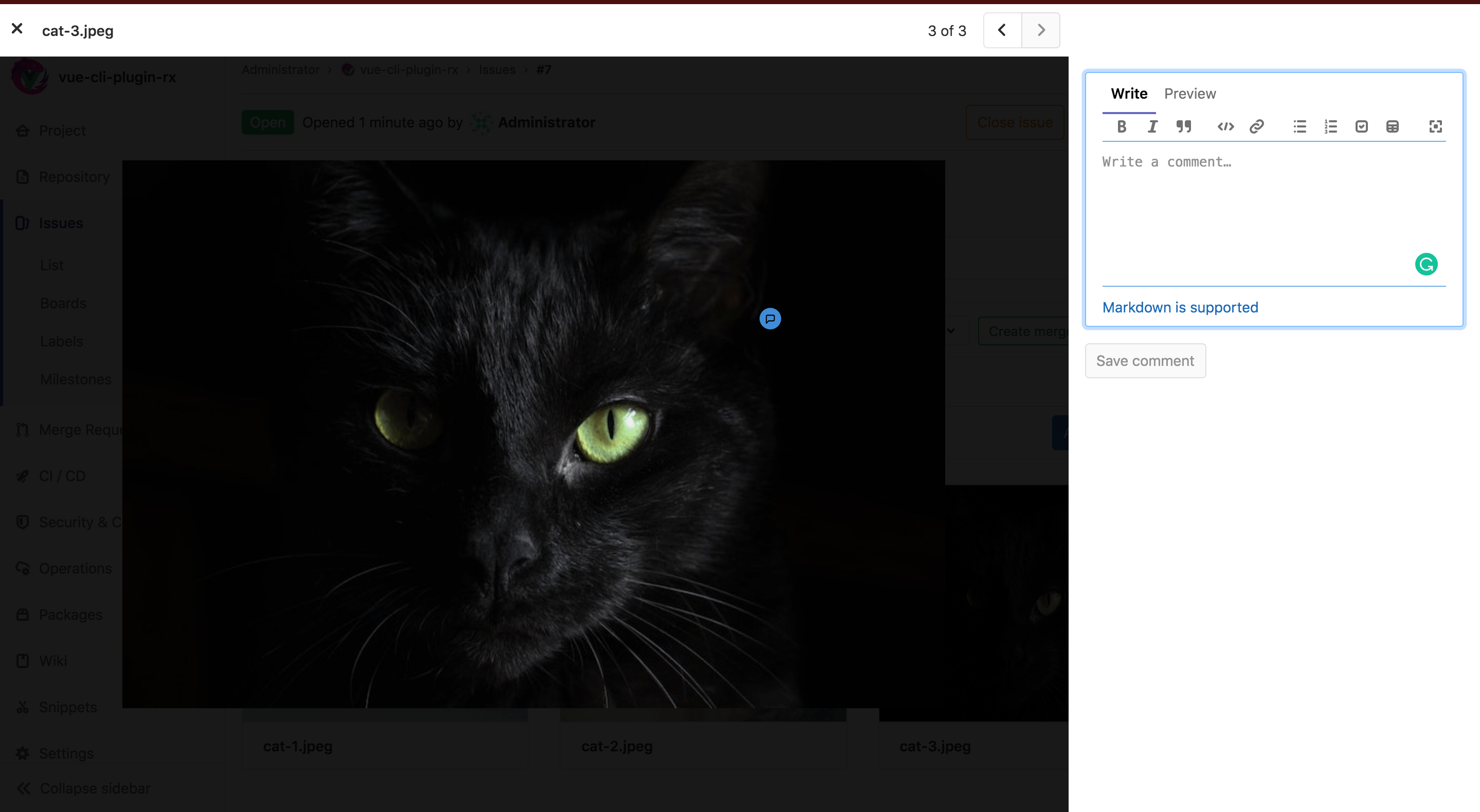 We support referring to designs in Markdown, which is available throughout the application, including in merge request and issue descriptions, in discussions and comments, and in wiki pages.