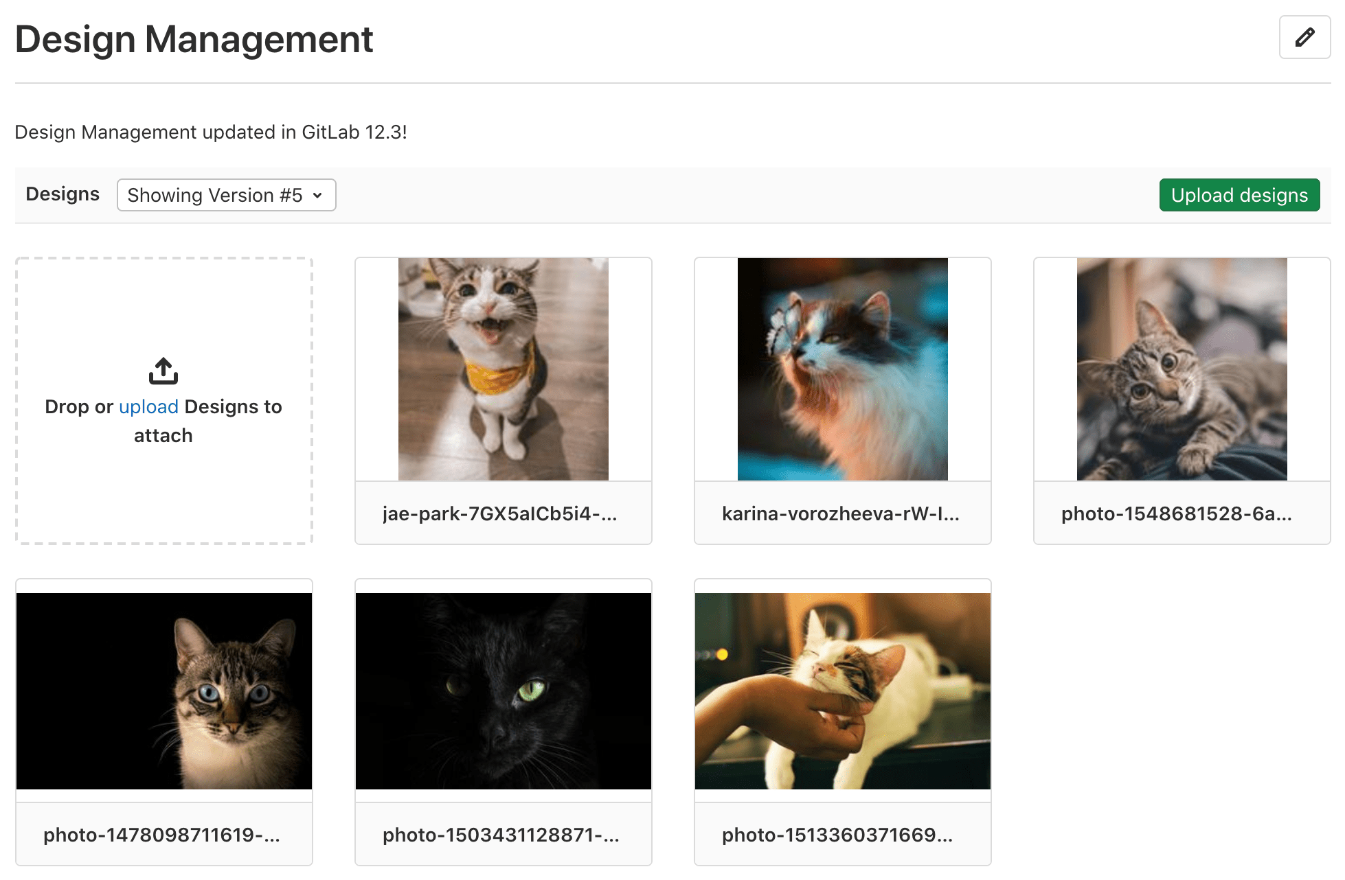Design Management allows you to upload design assets (wireframes, mockups, etc.) to GitLab issues and keep them stored in one single place, accessed by the Design Management’s page within an issue, giving product designers, product managers, and engineers a way to collaborate on designs over one single source of truth.