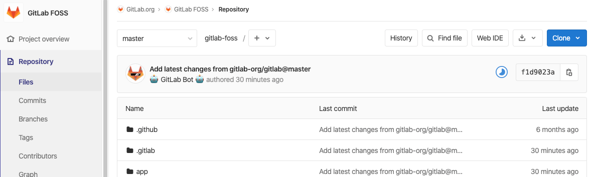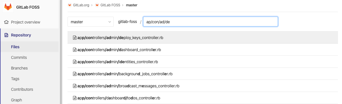 For example, consider the GitLab FOSS repository and that we want to open